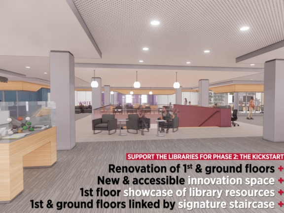 With construction beginning soon on an all-new collaborative space, and with shovel-ready plans for the rest of the first and ground floor, we've begun the fundraising stage for a significant renovation of King Library.