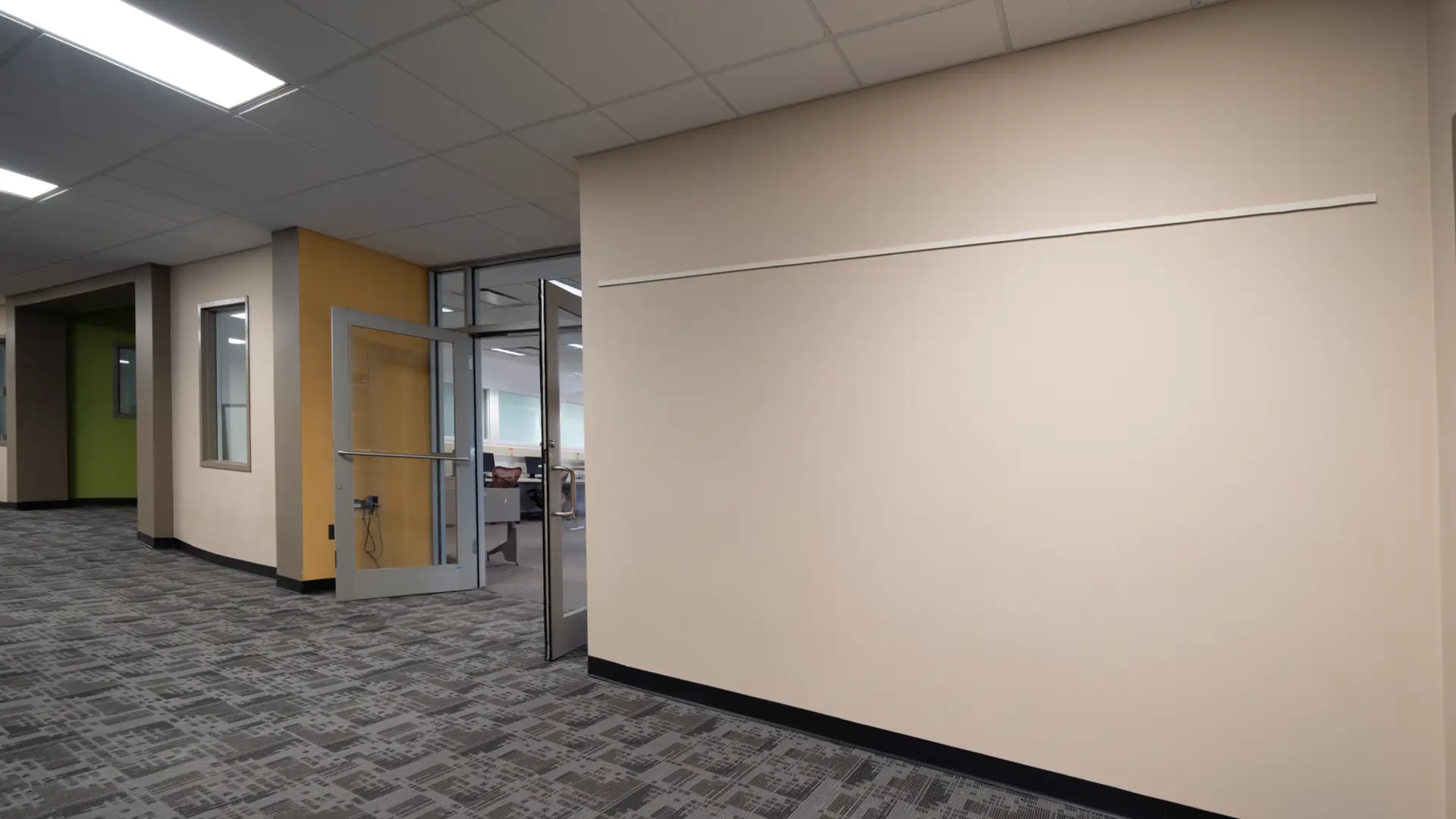 When completed, the estimated $675,000 project will transform the area into an open and collaborative lounge, a classroom with seats for 24, a 16-seat conference room, and a breakout space that can accommodate up to 20 people. The new areas will connect and extend the adjacent Inez Kamm Electronic Instruction Room (King 110) and bring more natural light to the southwest corner of the building.
