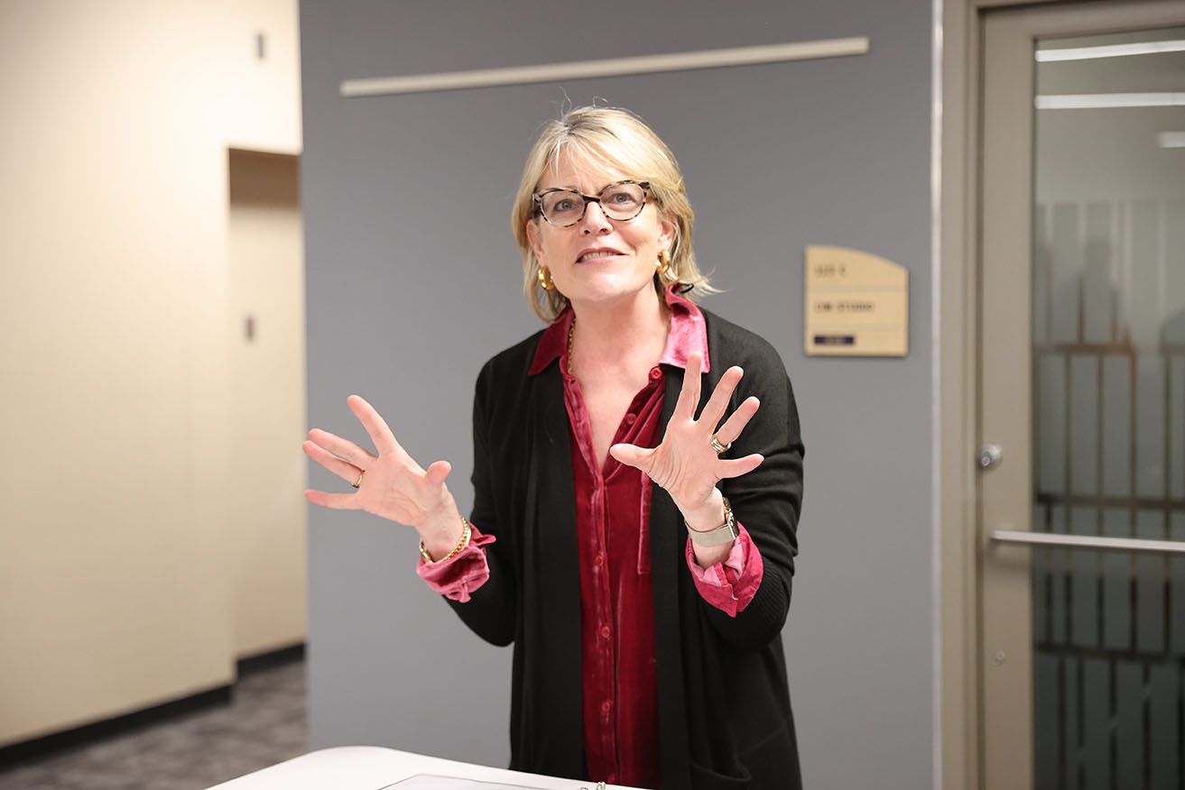 At the official ribbon cutting ceremony on Monday, many supporters and friends of the Libraries spoke about the completion of Phase I of King Kickstart and what the new Sidley Lounge had to offer. Students Abby Haverkos and Emily Davis said “we know this space will be a really great learning environment, whether that be for classes, organizational meetings, or just a place to concentrate and get work done.” Provost Liz Mullenix shared about her excitement for the new space, joking that if she wasn’t in her office, she might be asleep on one of the new couches in the common area. Jerome Conley, Dean of the Libraries, thanked the attendees and everyone who was involved with the project. He also expressed that this was just the first step for a refurbished King Library.